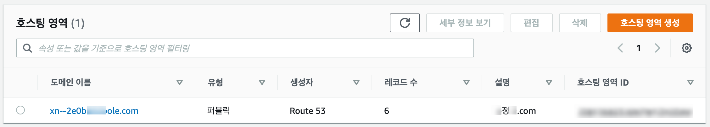 위의 사진은 AWS Route53 설정 페이지인데 도메인 이름을 퓨니코드로 등록해서 알아보기 힘든 것을 알 수 있습니다.