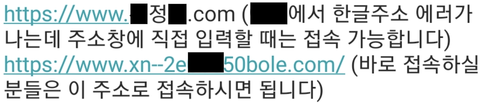 어쩔 수 없이 구구절절하게 이유를 설명하며 퓨니코드 링크도 추가할 수밖에 없었습니다.