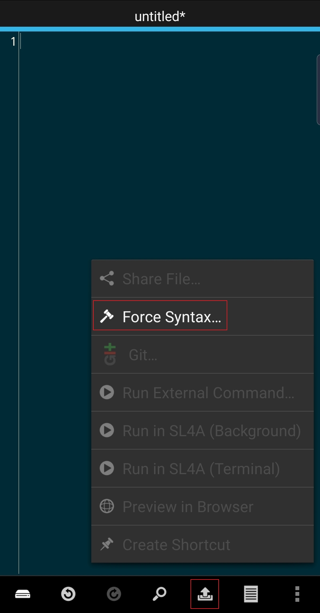 화살표가 그려진 버튼을 누른 후 'Force Syntax...'을 눌러 원하는 언어로 설정합니다.